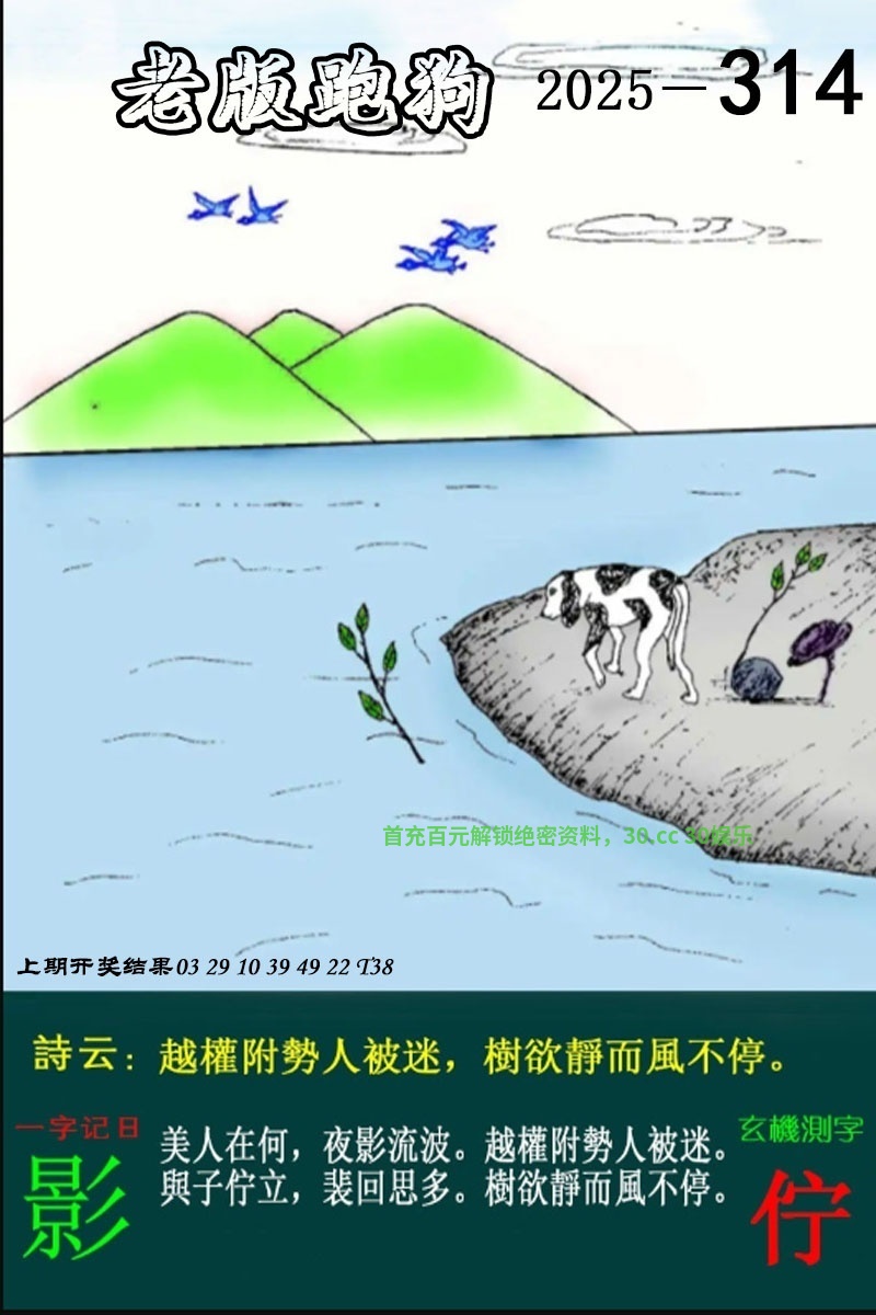 314期:【老跑狗特码诗】开【羊23】 玄机詩雲:越權附勢人被迷,樹欲靜而風不停。美人在何,夜影流波。越權附勢人被迷。與子佇立,裴回思多。樹欲靜而風不停。 诗句解:美人在何解吉美兔龙蛇马鸡羊。 跑狗七肖:兔龙蛇马鸡羊虎 |